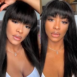 S-noilite® 23 Inches Women's Long Full Wigs One Piece Straigh Hair Wig Flat Bang Heat Resistant Dark Black