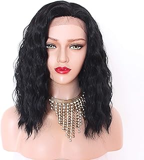 Maycaur Glueless Lace Front Wigs Short Bob Natural Curly Synthetic Lace Front Wig Heat Resistant Fiber Black Wave Wig for Black Women