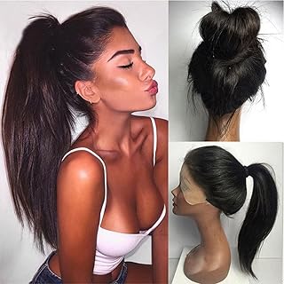 Maycaur Synthetic Lace Front Wig Silky Straight Heat Resistant Fiber Wig Natural Black Color With Baby Hair For Women(20",black)