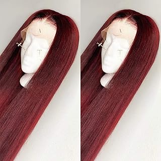 Fureya Synthetic Wigs for Women Heat Resistant Fiber Glueless Lace Front Ombre Wigs with Baby Hair Wine Red with Black Roots 24 inch