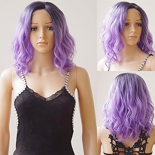 16" Short BOB Wave U Part Lace Front Wigs Ombre Black mix Purple Heat Resistant Synthetic Wavy Hair Wig for Women