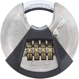 Burg-Wächter Rundbügelschloss, Vorhängeschloss mit Zahlencode, 10 mm Bügelstärke, Edelstahlkorpus, Kneifschutz, Circle 23 C 70