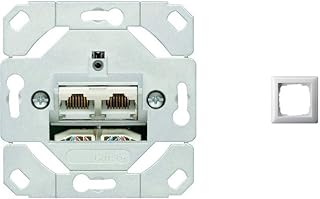 Gira 245200 Netzwerkdose 2-fach Cat.6A IEEE 802.3an Unterputz Einsatz & 021103 Rahmen 1-fach ST55, reinweiß-glänzend