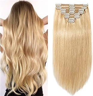 Clip in Extensions Echthaar Haarverlängerung Haarteil Doppelt 8 Teile hitzebeständig glatt Mittelblond#24 20"(50cm)-150g