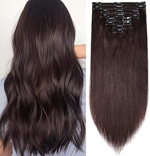 Clip in Extensions Echthaar Haarverlängerung Haarteil 8 Teile hitzebeständig glatt Dunkelbraun#2 24"(61cm)-80g