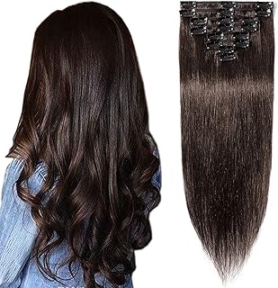 Clip in Extensions Echthaar Dunkelbraun #2 Haarverlängerung 8 Teile 18 Clips 7A Remy Human Hair guenstig Glatt Haarverdichtung 50cm-75g