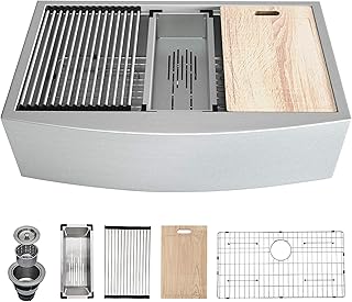 GhomeG 76,2 cm Farmhouse Spüle Schürze Front Ledge Workstation Küche Spüle Tiefe Einzelbecken 18 Gauge Edelstahl Bauernhof Spüle mit Sieb