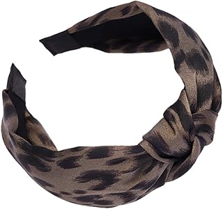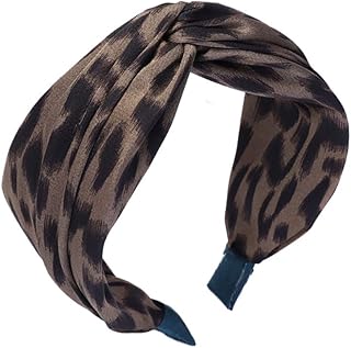 Qinlee Breite Haarreife mit Leopard Headband Haarband für Yoga Damen Stoff Haarreif mit Schleife-Vintage-Wunderschön Stirnband Haarschmuck Haarreif für Damen(braun)