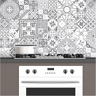 Ambiance-Live 60 Aufkleber Fliesen | Sticker Selbstklebend Fliesen – Mosaik Fliesen Wandtattoo Badezimmer und Küche | Fliesen Kleber – Nuance-grau traditionellen – 10 x 10 cm – 60-teilig
