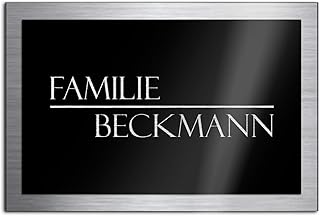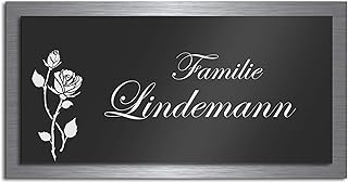Edelstahl Türschild mit Gravur | Familienschild selbstklebend oder mit Bohrlöcher | Namensschild in versch. Größen | 35 Motive Klingelschild - Türschilder für die Haustür mit Namen selbst gestalten