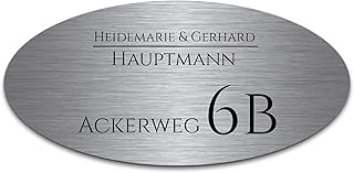 Edelstahl Schild mit Gravur | Türschild selbstklebend oder mit Bohrlöcher Namensschilder versch. Größen ab 12x4 cm oval Schilder für Gartenbank Rentnerbank - Türschilder für die Haustür mit Namen selbst gestalten