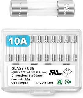 Chanzon 20 Stück VDE Prüf 5x20 10A Sicherungen Sicherung Glassicherung Glasrohrsicherung Feinsicherung Schnelle Glas Sicherung 125V Glas AGC-Patronen-Rohrsicherung F10AL 250 V