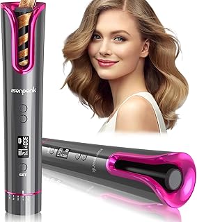 Automatischer Lockenstab Kabelloser Lockenwickler Lockenstäbe, ISENPENK Drahtloser lockenstab große Locken USB Hair Curler mit Verbrühschutz, 4 Temperatur 6 Zeiteinstellungen LCD Display