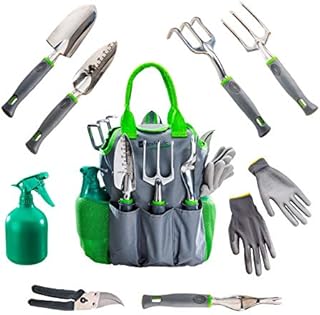 Queta Gartenwerkzeug Set 10-teiliges Gartengeräte Pflanzen Werkzeug Set mit Gartenschere, Handkelle, Pflanzkelle, Harke, Handschuhen usw.