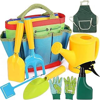 FOROREH Kinder Gartenwerkzeug-Set, Gartentasche kompakt aus Holz und Eisen, Spielwerkzeuge für den Garten, Gartenspielzeug für Kinder, Gartenwerkzeuge mit Handschuhen, Schaufel, Harke, Tragetasche