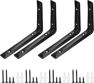 Regalhalterungen aus Eisen, 5 mm dick, strapazierfähig, L-förmig, nicht rustikal, schwebend, schwarz, dekorative Regalstütze, Eckwinkel mit Schrauben, 4 Stück