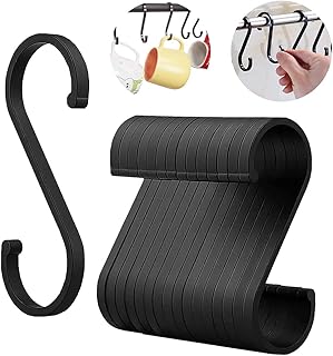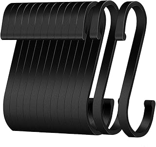 ESFUN S-Haken zum Aufhängen, 9,4 cm, robust, für den Schrank, Pflanzenhaken zum Aufhängen von Töpfen, schwarze S-förmige Haken, Metall-Kleiderbügel, Haken für Küche, Werkstatt, Badezimmer, Garten