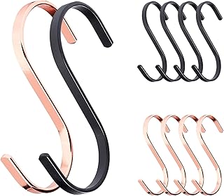 Bgfuni 10 Stück S Haken, Fleischerhaken S-Förmige Haken, 11 cm Anti-Rost Metall Aufhängen S-Haken Garderobe Haken für Küche, Bad, Schlafzimmer, Büro und Garten (Schwarz-5 Stück, Roségold-5 Stück)