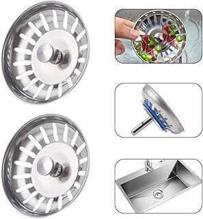 2 Stück Küchenspüle-Sieb aus Edelstahl, Abflusssieb mit Gummistopfen, Ersatz für Küchenspüle, Abflusssieb (8,9 cm)